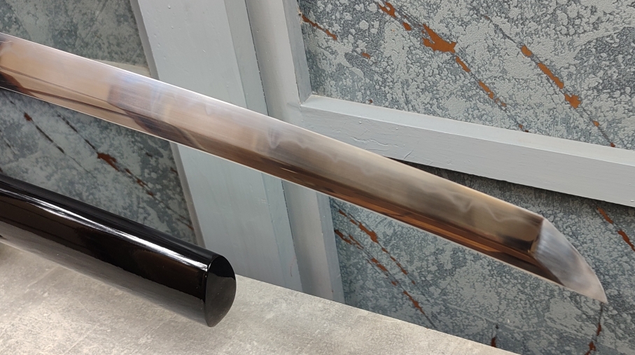 Nagasa: Čepel v shinogi zukuri byla vykována v san-mai gitae, tedy za použití oceli s vysokým obsahem uhlíku 1095pro kawagane (vnitřní část čepele) a oceli se středním obsahem uhlíku 1045 pro shingane (postranní části čepele). Díky tomu je čepel dostatečně tvrdá, ale současně i pružná a odolná proti zlomení. Předěl mezi kawagane a shingane je při lepším pohledu znatelný již z fotografií.